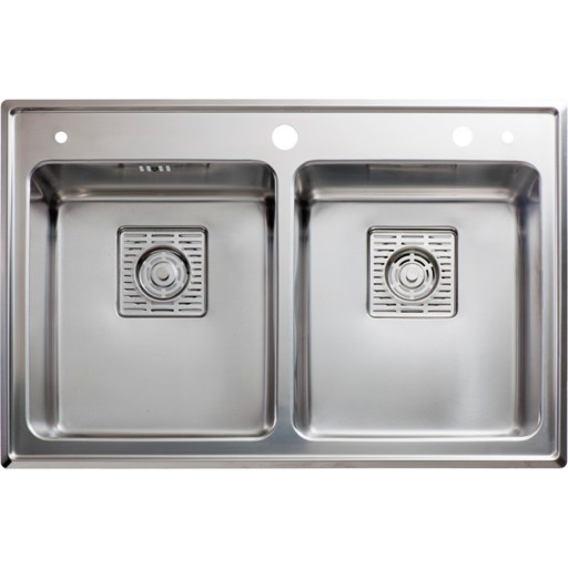 Vi har fundet Intra Frame Fr Df Køkkenvask X Rustfrit Stål fra Intra hos completvvs i kategorien . Intra Frame FR78DF dobbelt køkkenvask 78×51 cm i rustfrit stål. Med to lige store kummer, med overløbshul i venstre side og uden overløb i højre side. Denne dobbeltvask leveres med en skyllekurv i plast samt en sæbedispenser til montering i højre side af