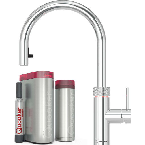 Vi har fundet Quooker Flex Pro Køkkenarmatur Krom fra Quooker hos completvvs i kategorien . Få 5 slags vand i n hane Quooker Flex vandhane med udtræksslange i blank, sølvfarvet krom. Med tilhørende 3 liters beholder til kogende vand og Cube beholder til afkølet vand, med eller uden kulsyre. Flex-hanen leverer varmt, koldt og kogende vand i n o